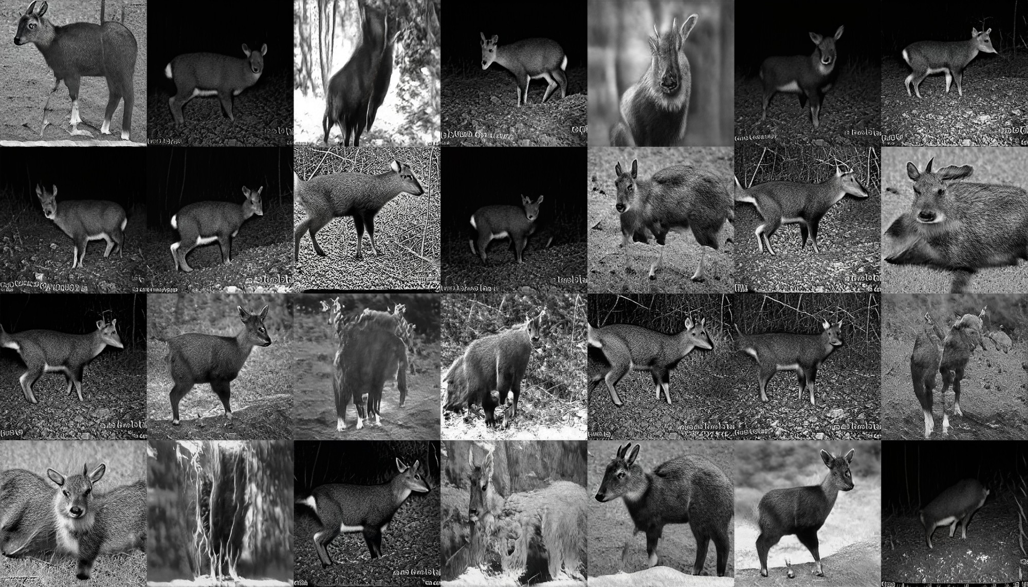 During Unmake Lab’s work process, when experimenting with such photos as a dataset for machine learning, there was a scene where an interesting discovery could be made. When images extracted from trail cameras—including those that were cropped, overly zoomed in, or captured random aspects of wild animals—were used as a dataset and processed through machine learning, the images of animals were predominantly generated as side or frontal views. This is likely because the animal data that existing artificial intelligence has been trained on primarily consists of idealized images within human visual perspectives, such as side or frontal views, and the pattern is learned through transfer learning and generated.