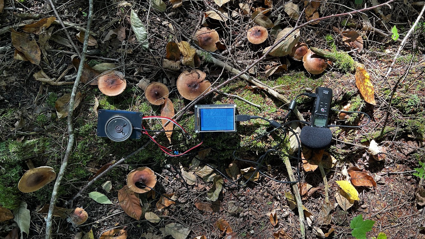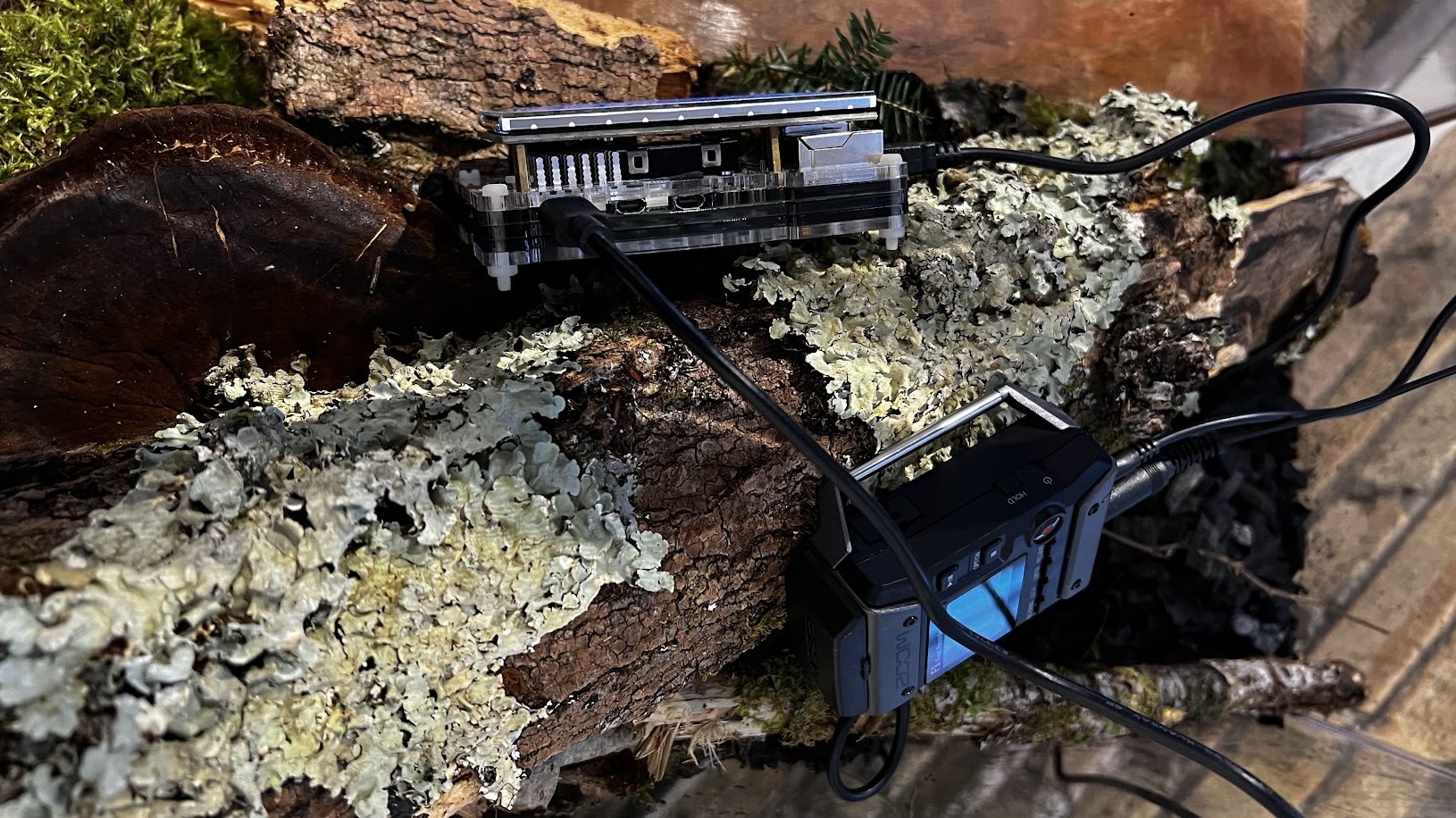All these questions went into the technical development of the project as part of the GenAI Studio initiative at Concordia University’s Milieux Institute and its public presentation at MUTEK Forum’s Wilding AI Lab in August 2024. During the residency I developed a prototype agent deploying embedded machine learning models on a small-scale computing device, a Raspberry Pi 5. As an agentic machine, the Pi utilizes microphones, speakers, generative sound and tiny language models to enable communication with its surroundings. The agent is battery powered to allow it to operate fully independent from large scale digital infrastructures.