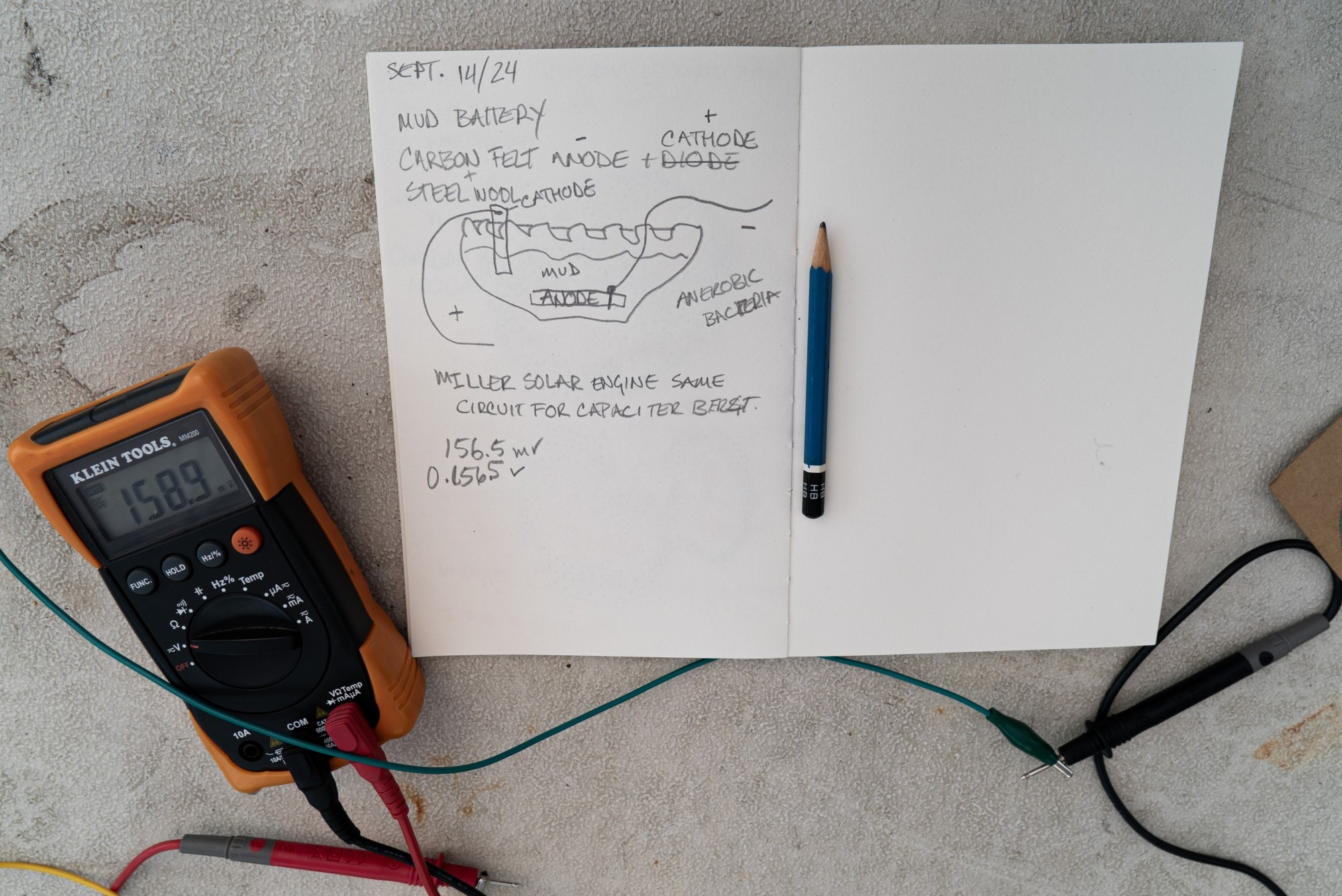 The circularity of the main catalysts for electricity generation—soil, bacteria, and plants—is central to this project. The challenge lies in understanding the ecological systems that drive electrogenesis in wet soil. Equally important are the material experiments aimed at building energy-harvesting infrastructures, such as waterproof containers, electrical wiring, and electrodes. This requires a careful examination of the global supply chain of both natural and synthetic materials. Each component in the experiments is evaluated in terms of how it is produced, used, and discarded, to develop a holistic understanding of the system being enabled—and the one being replaced. Additionally, I have experimented with electronic systems designed to operate on the low voltage and low current provided by bacterial electricity.