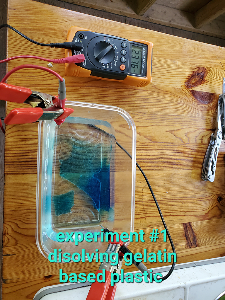 To experiment with water in this way I made dissolvable solids out of bioplastics. The idea was that if I had a solid that could dissolve easily in water, I could measure the dissolution over time and use that measurement as a timing mechanism in an interactive installation. Here water is not the subject but an active agent that can drive a narrative. I conducted these experiments at my family dacha (cottage) before the group met.