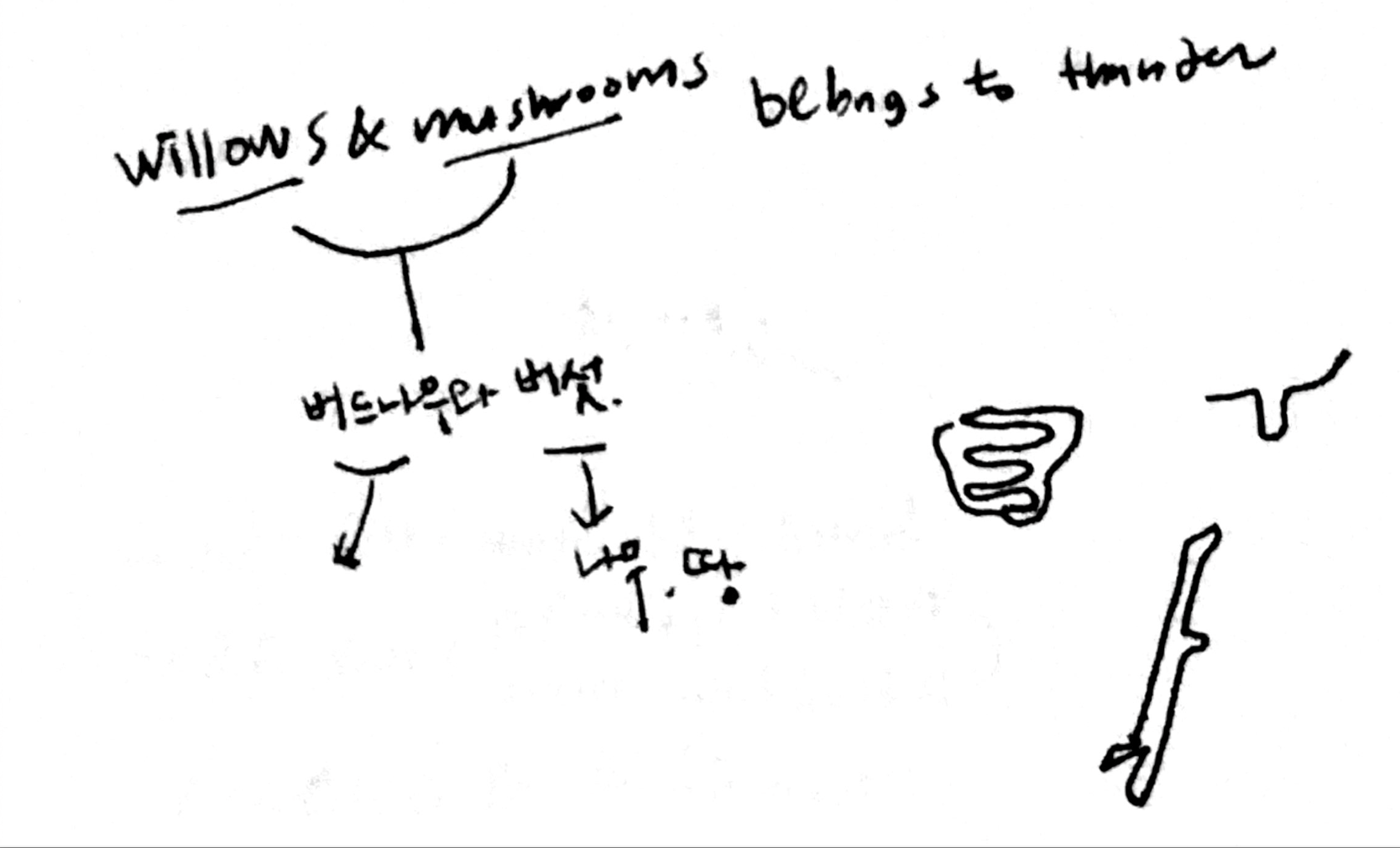 "Willows and Mushrooms belong to thunders. I am closely encountering the times of the forest told by willows after the rain and mushrooms..." - Part of a note (September 2024)
