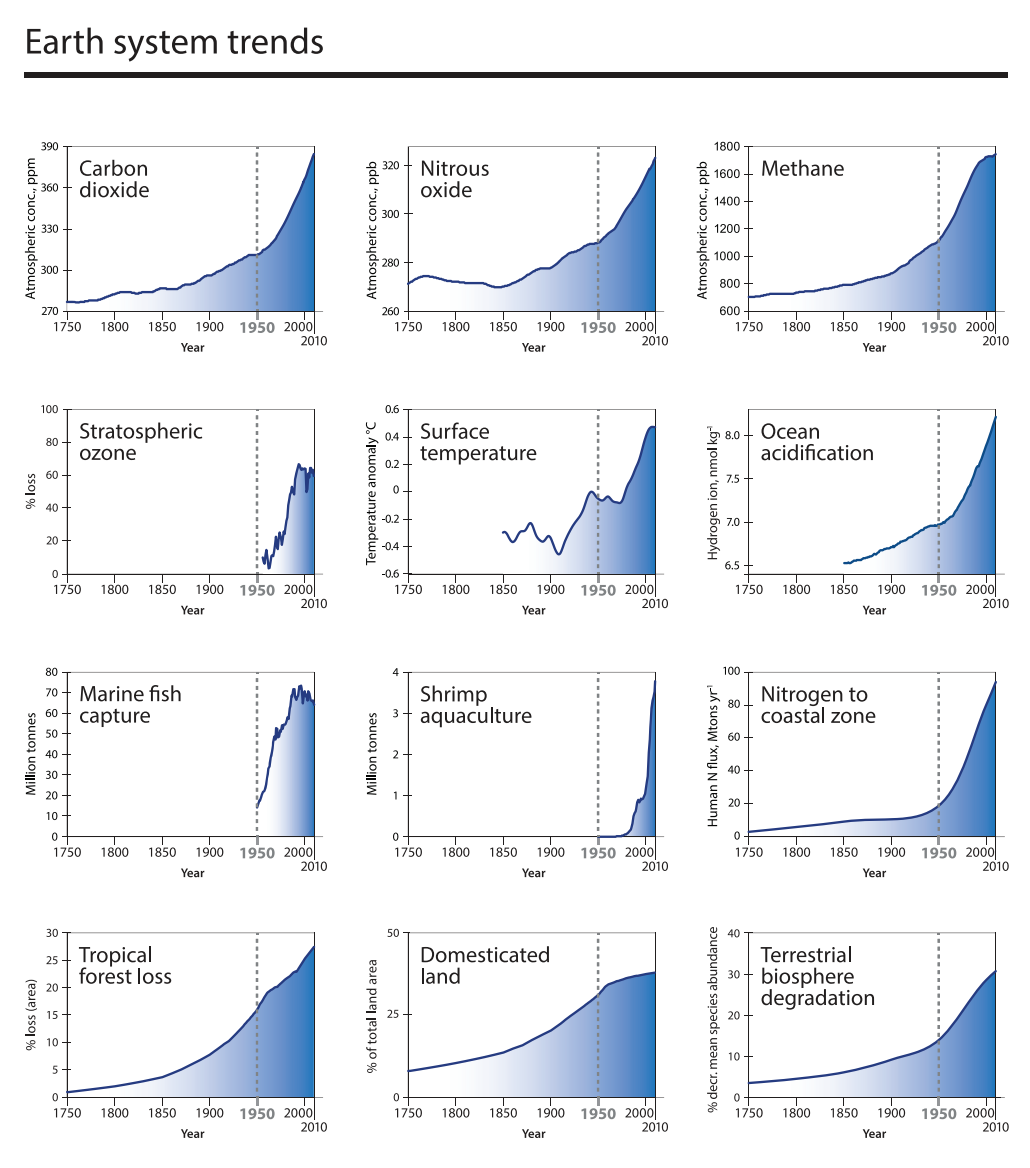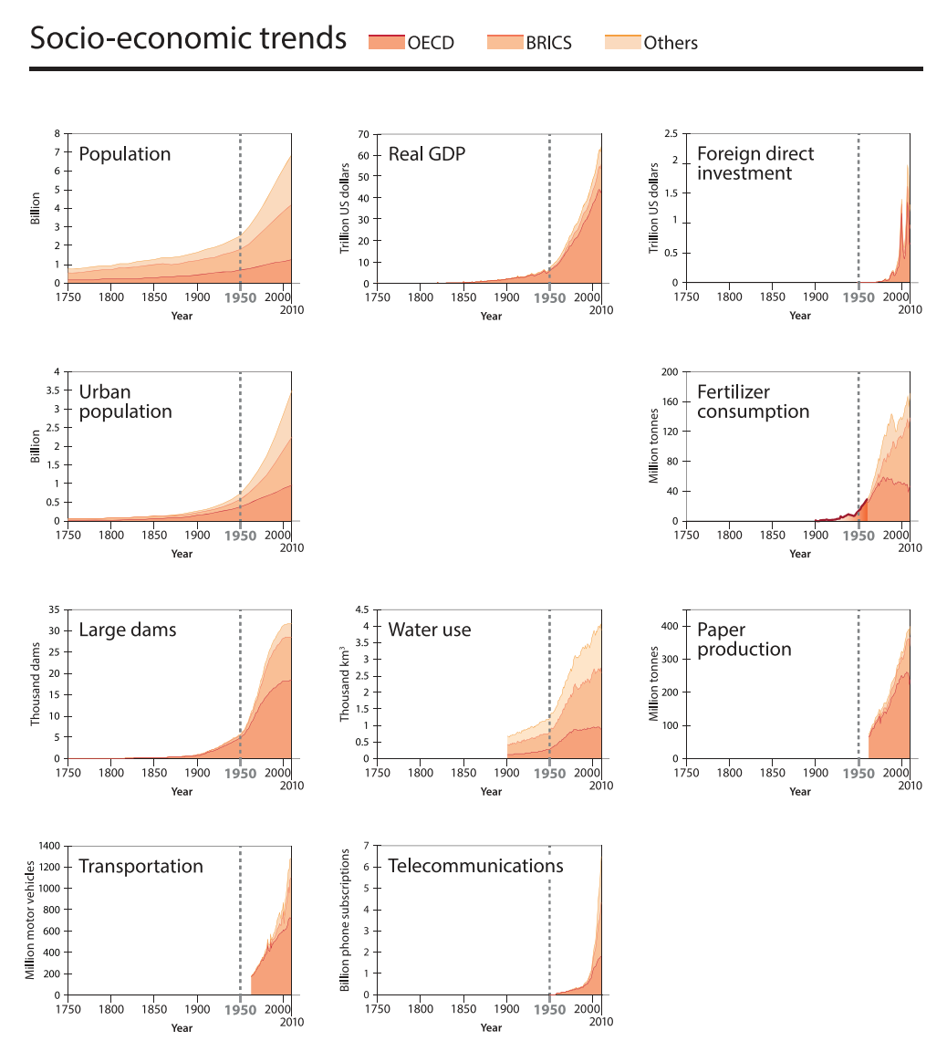 - 제안된 인류세의 시작점은 1950년으로, 핵실험, 산업화, 그리고 생태계 변화가 두드러지게 나타나는 시기로 제안.