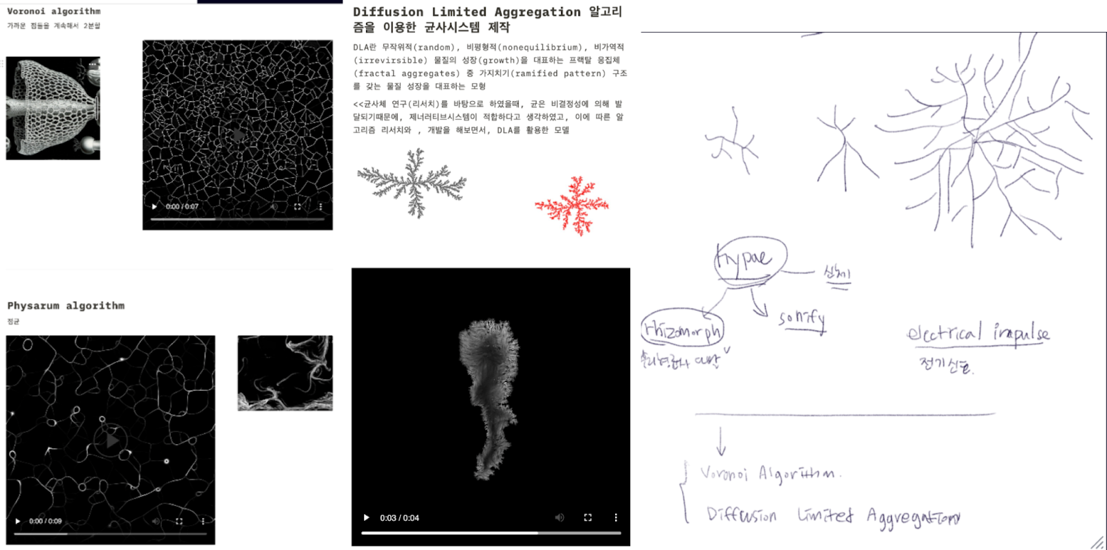 퍼프(puff) 버섯이나, 포자들을 250배율 정도의 현미경으로 관찰하고, 유기적 알고리즘, 자연의 수학적 알고리즘 리서치(2021, 2022, 2024)를 재구성하는 실험을 하였다.