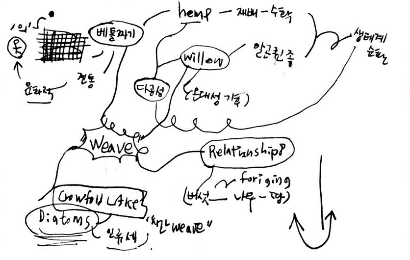 위빙을 다감각 적인 관점으로 탐구해온 시간들을 되돌아보면서, 자연과 인간, 그리고 자연의 알고리즘이 가진 지질학적, 생물학적, 문화적 기억의 층위를 플래니터리 위빙(Planetary Weaving)으로 통합하면서, 생태적 흐름, 인간의 기억, 기술적 알고리즘을 연결해 보고자 한다.