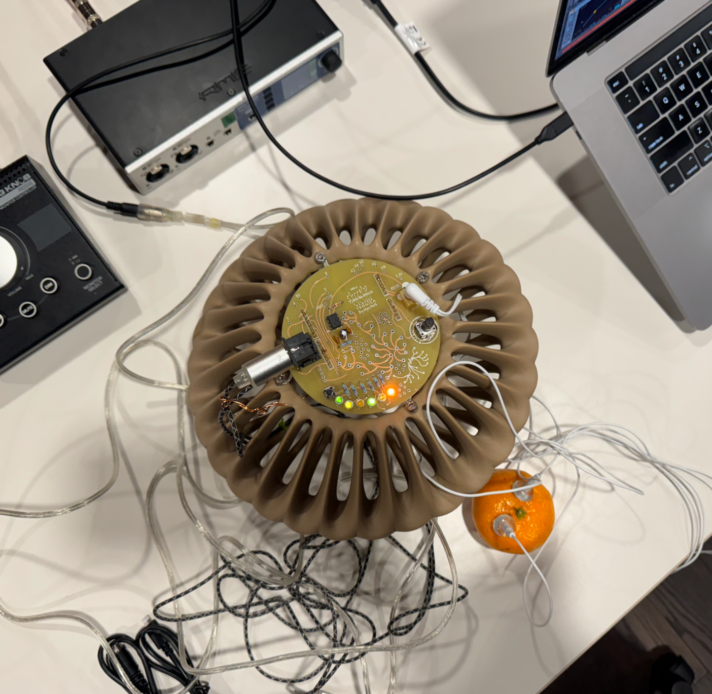 Tanhamutronica, a work developed from 2020 to 2023 and a synthesizer interface, generates MIDI values from biological signals and environmental data, allowing them to be sensed by humans. When connected to a living entity with biological signals, it becomes an equipment that can play sound.